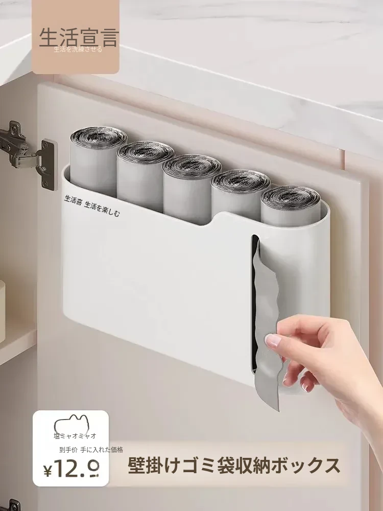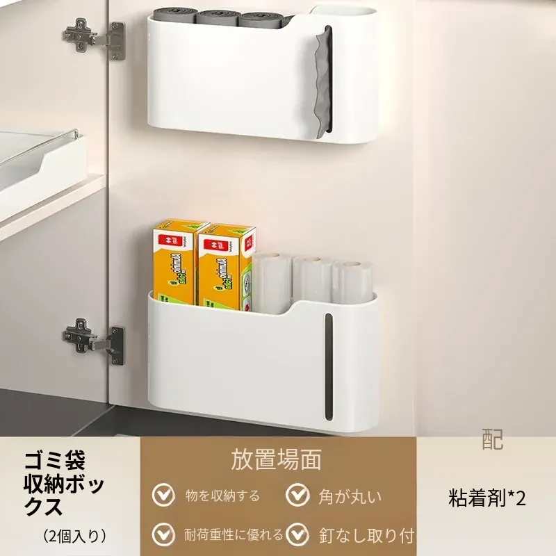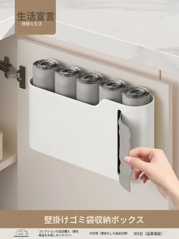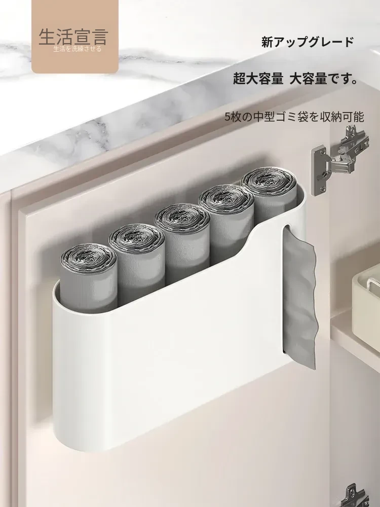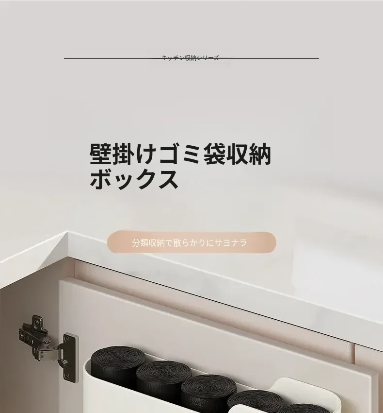 生活宣言のゴミ袋収納ボックス!キッチン壁掛け式で、穴を開けずに取り付け可能。大容量のプラスチック袋収納ができ、使いやすさ抜群!整理整頓をサポートする便利アイテムです。
