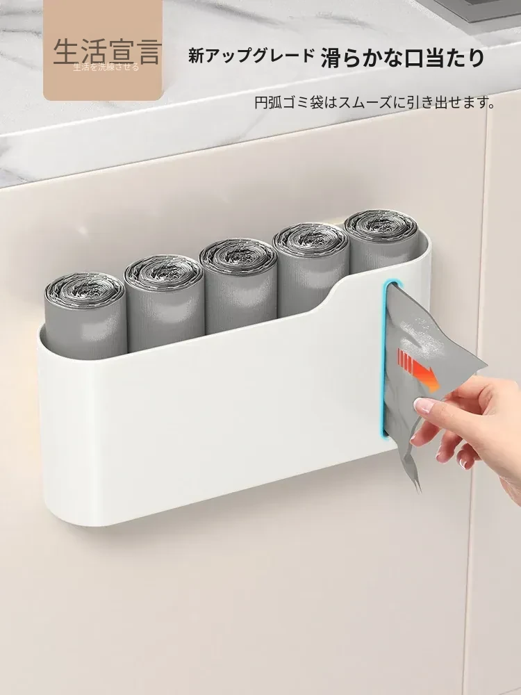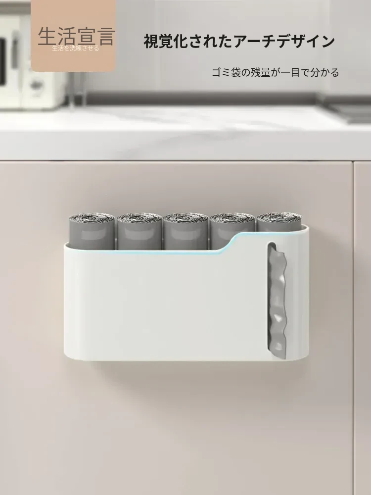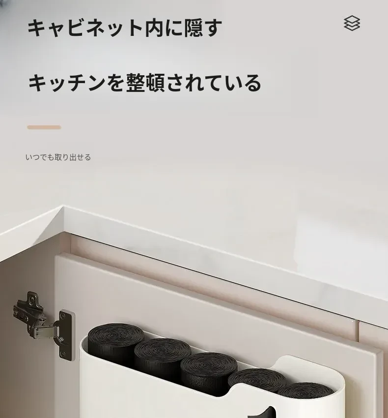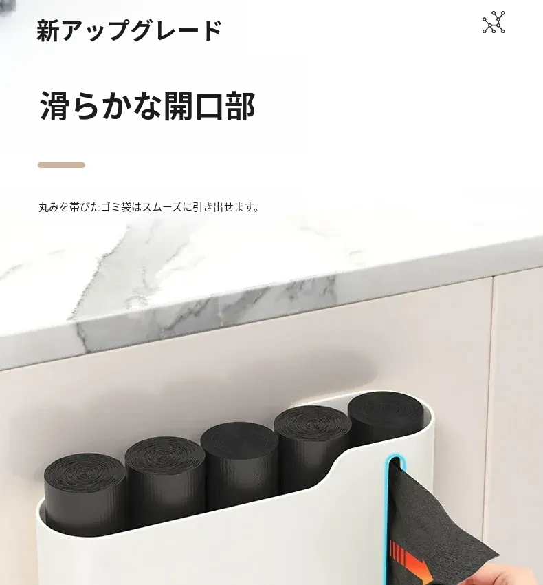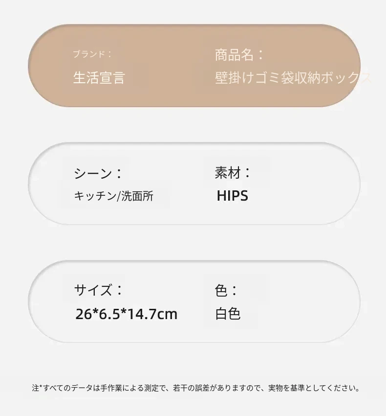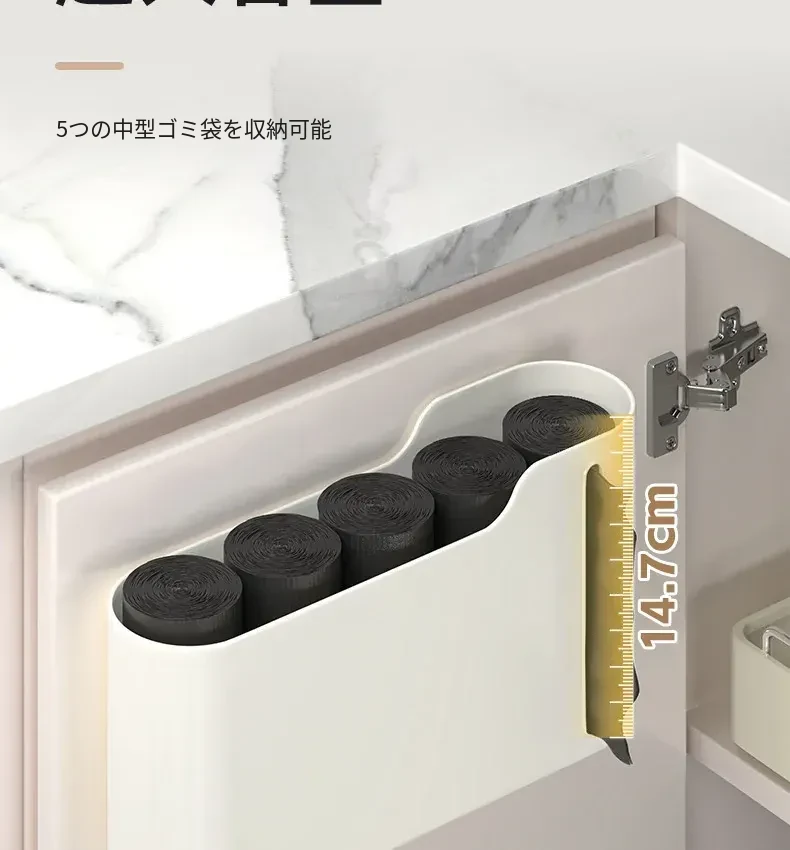 生活宣言のゴミ袋収納ボックス!キッチン壁掛け式で、穴を開けずに取り付け可能。大容量のプラスチック袋収納ができ、使いやすさ抜群!整理整頓をサポートする便利アイテムです。